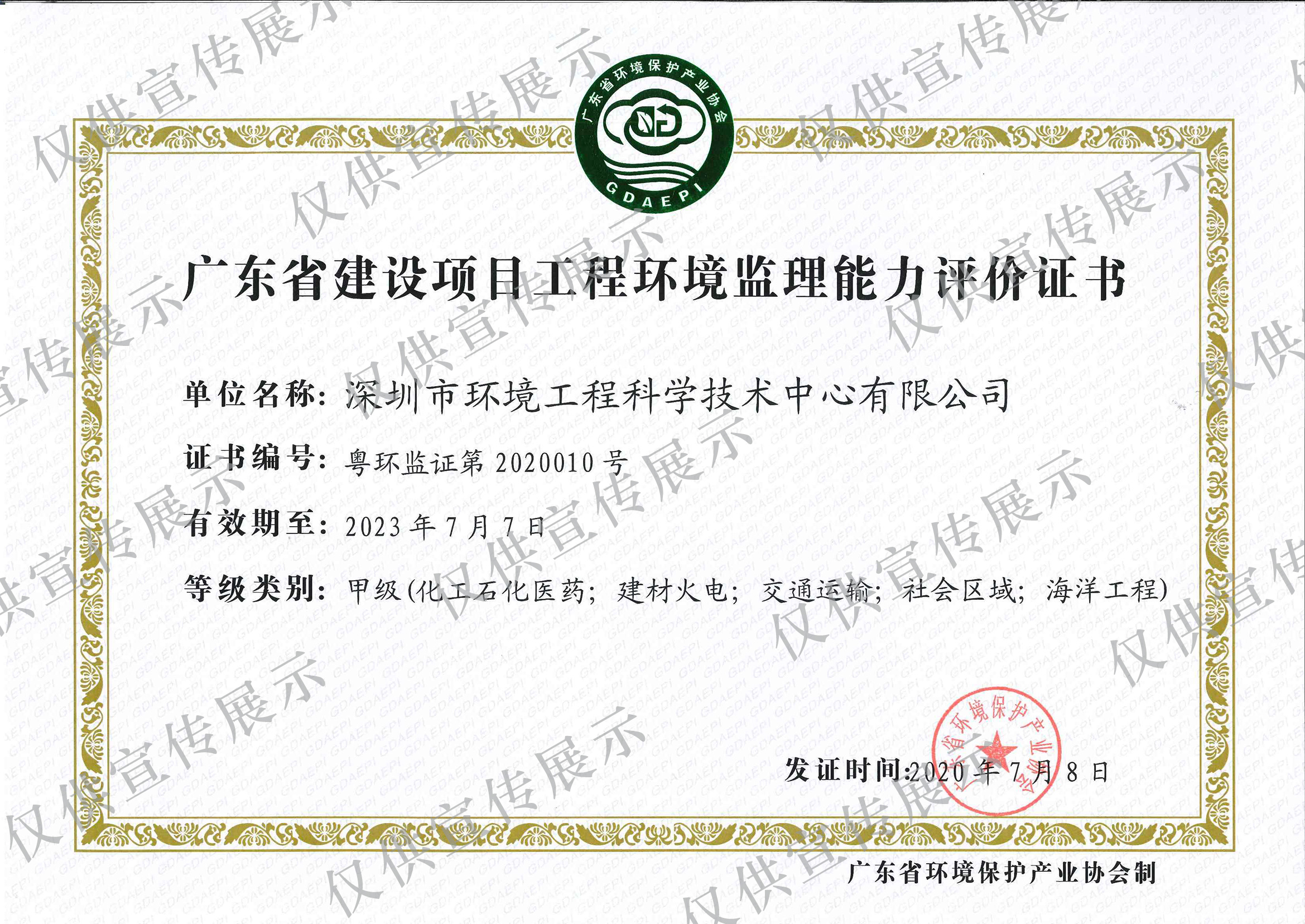 廣東省建設(shè)項(xiàng)目工程環(huán)境監(jiān)理能力評(píng)價(jià)證書